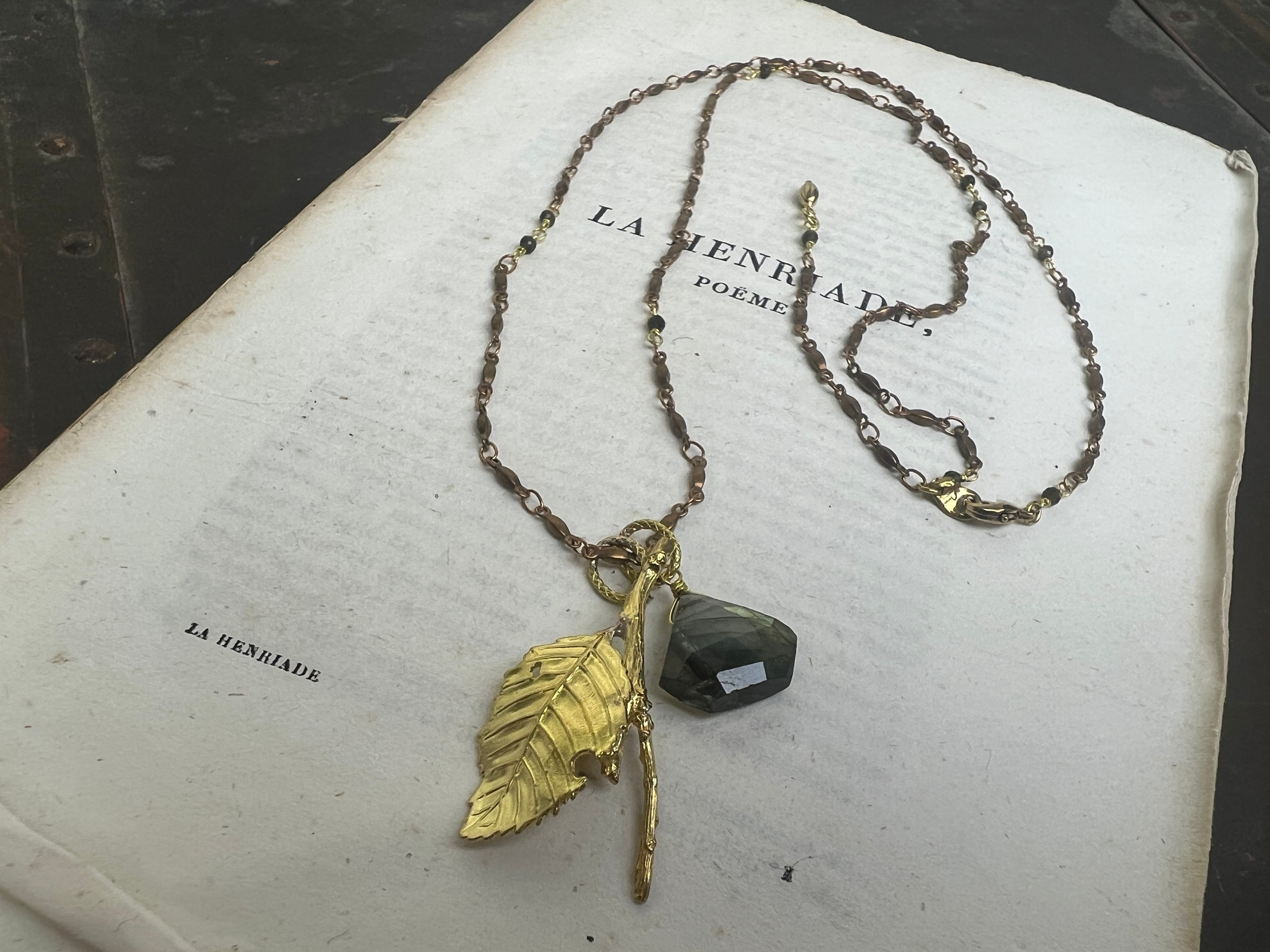 トップには魅惑的な輝きを放つ、ラブラドライトを添えています。