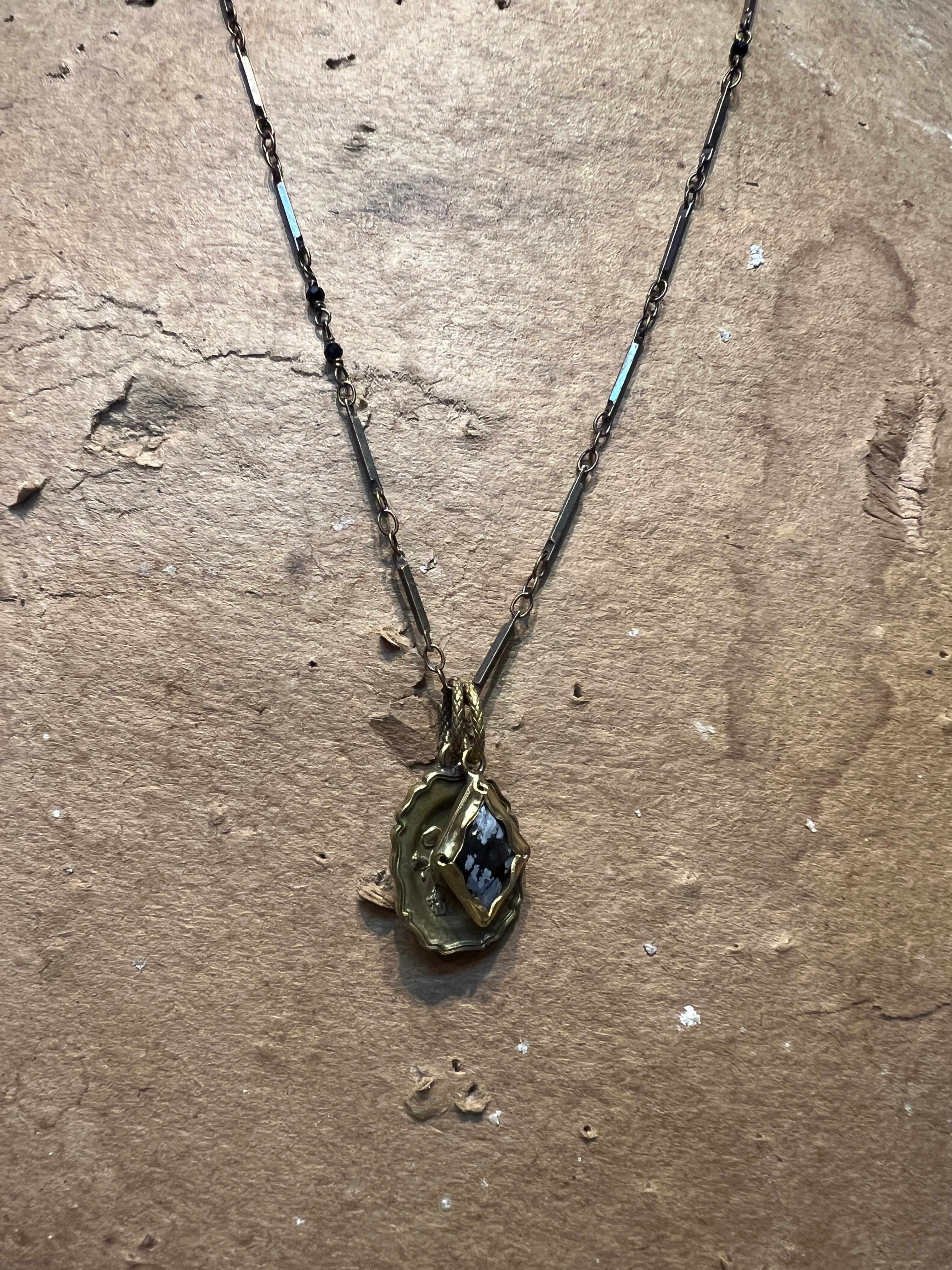 [ 素材 ] スノーフレークオブシディアン×オニキス×真鍮古美