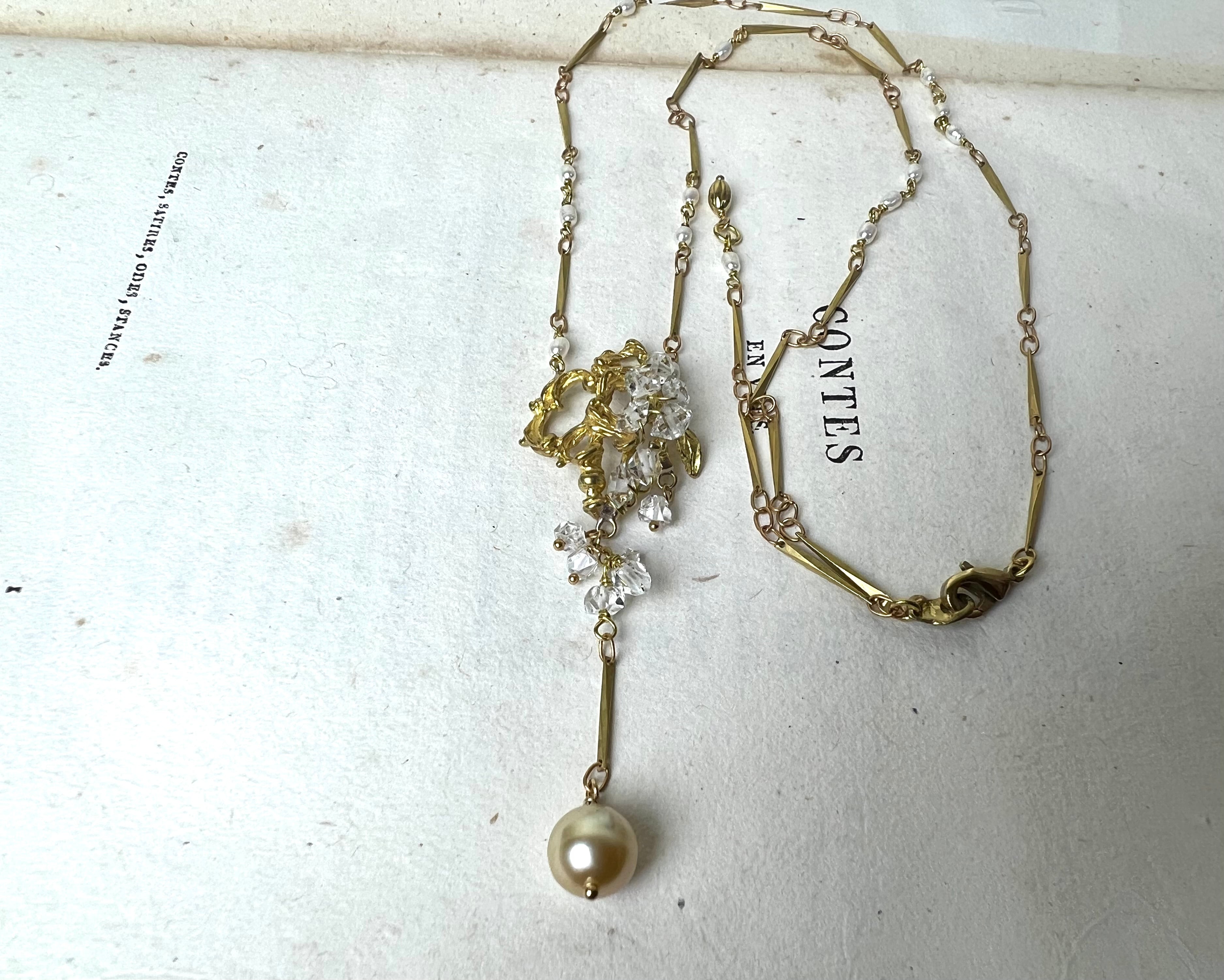 [素材] ハーキマーダイヤモンド、淡水パール、南洋パール×真鍮