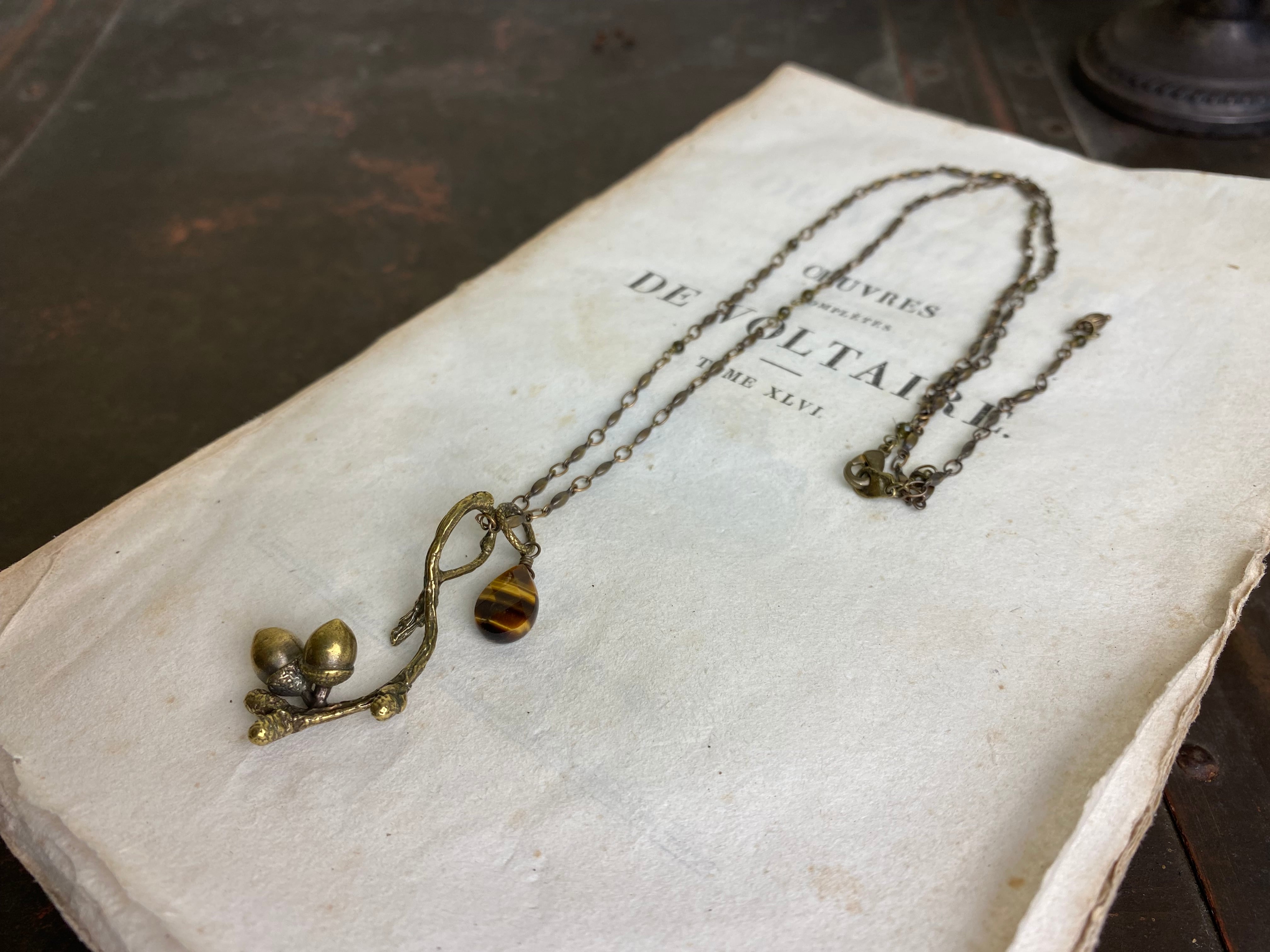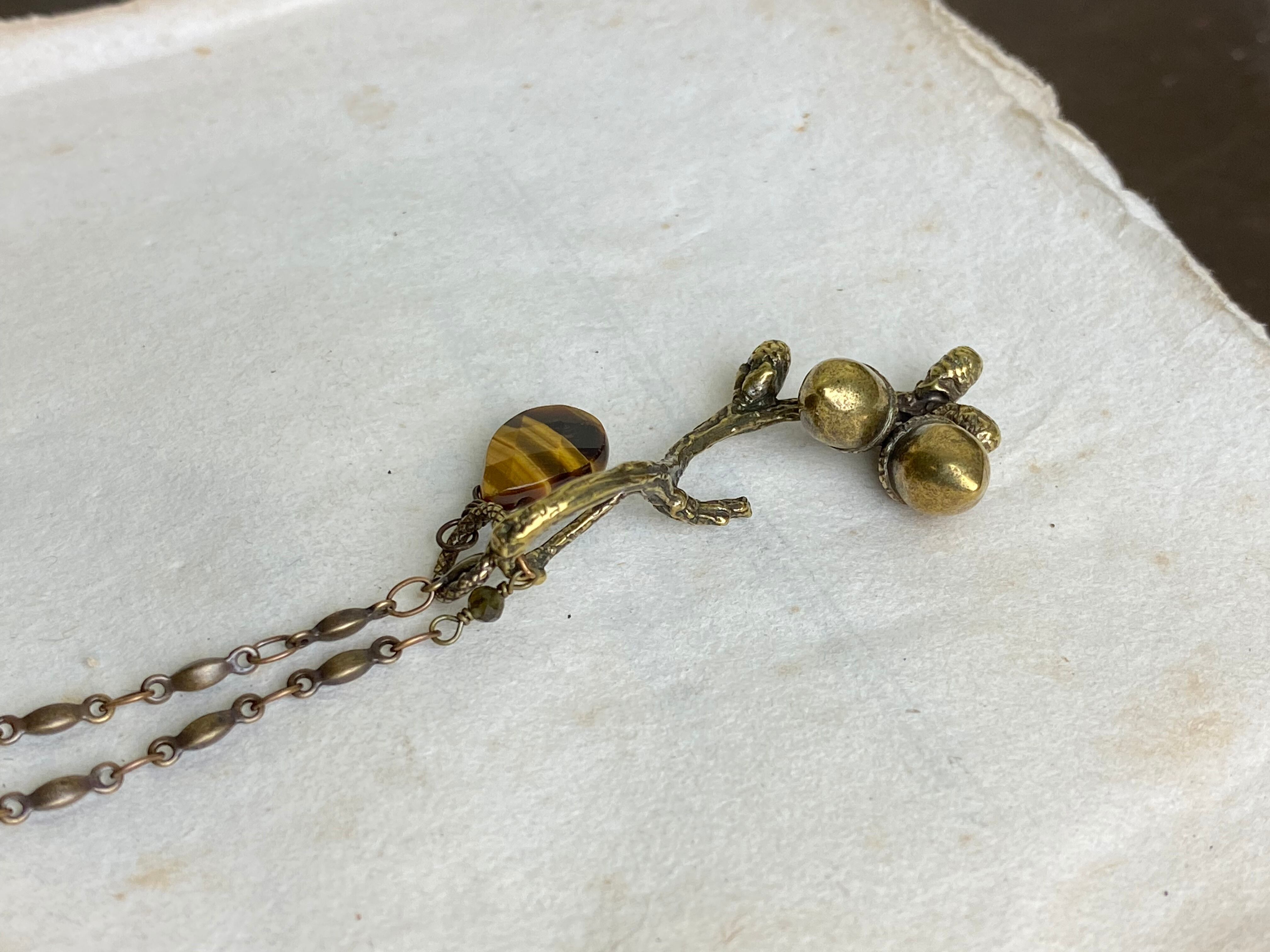 こちらはリアルな枝のモチーフに小さな実が2粒ついたネックレス。