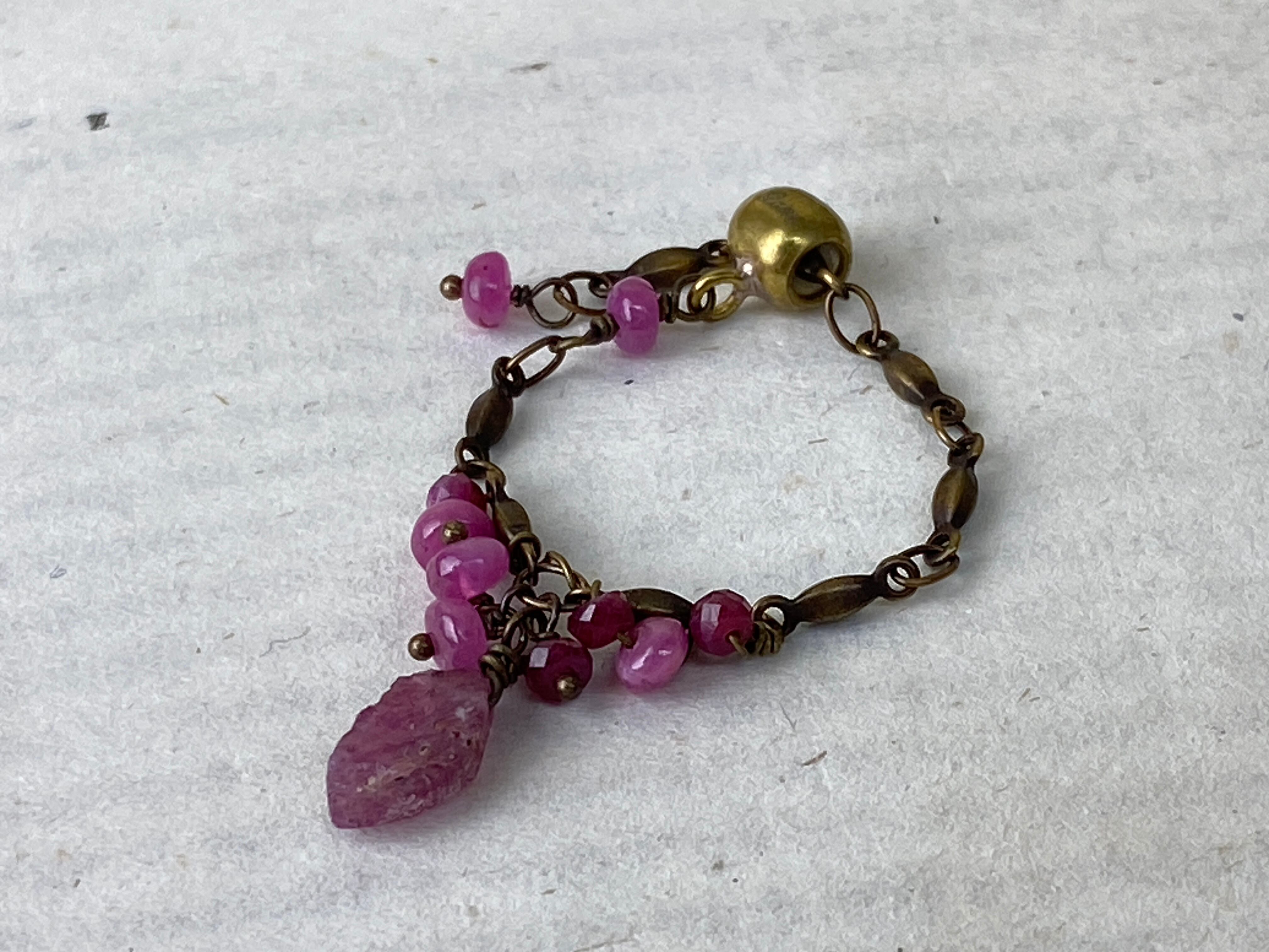 ピンクサファイア原石×ルビー フリーチェーンリング