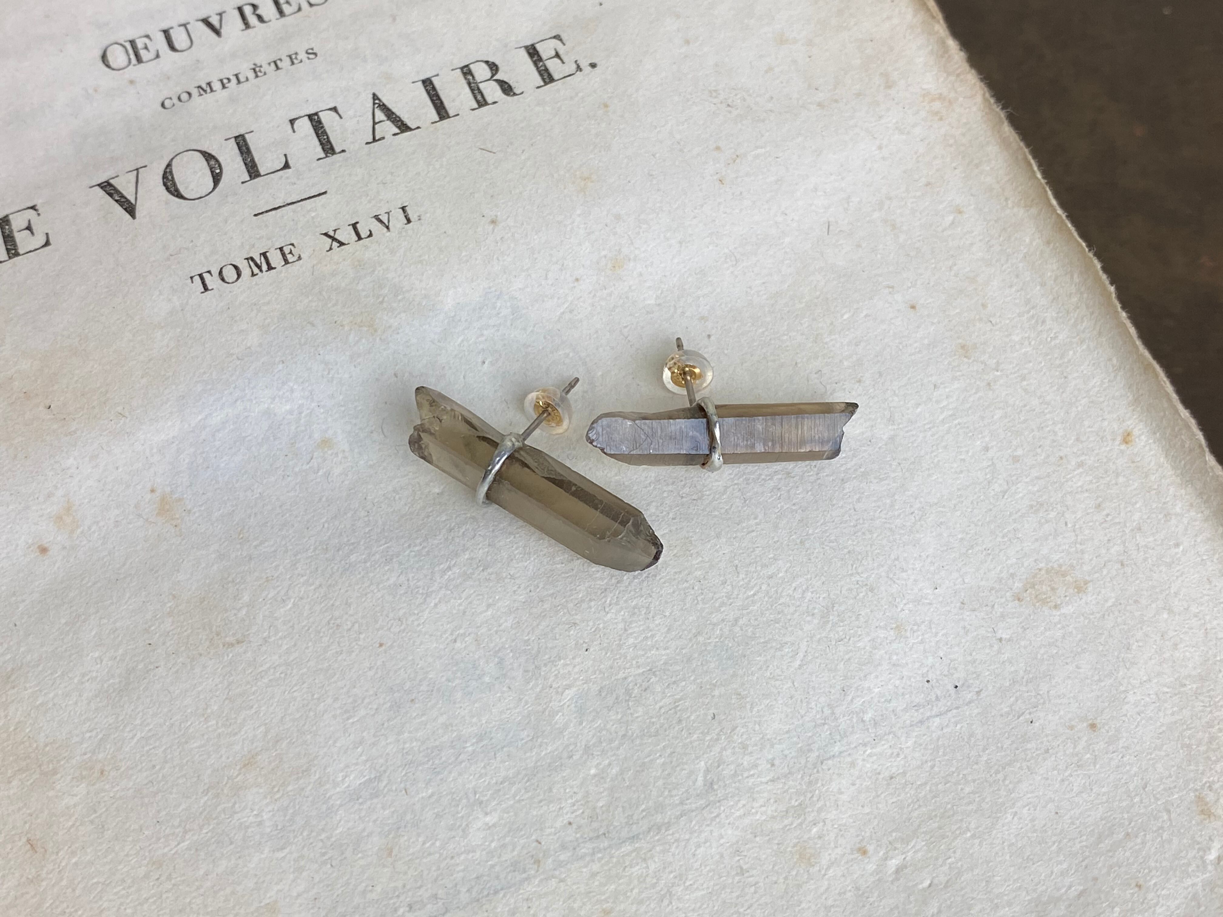 スモーキークォーツポイント ピアス