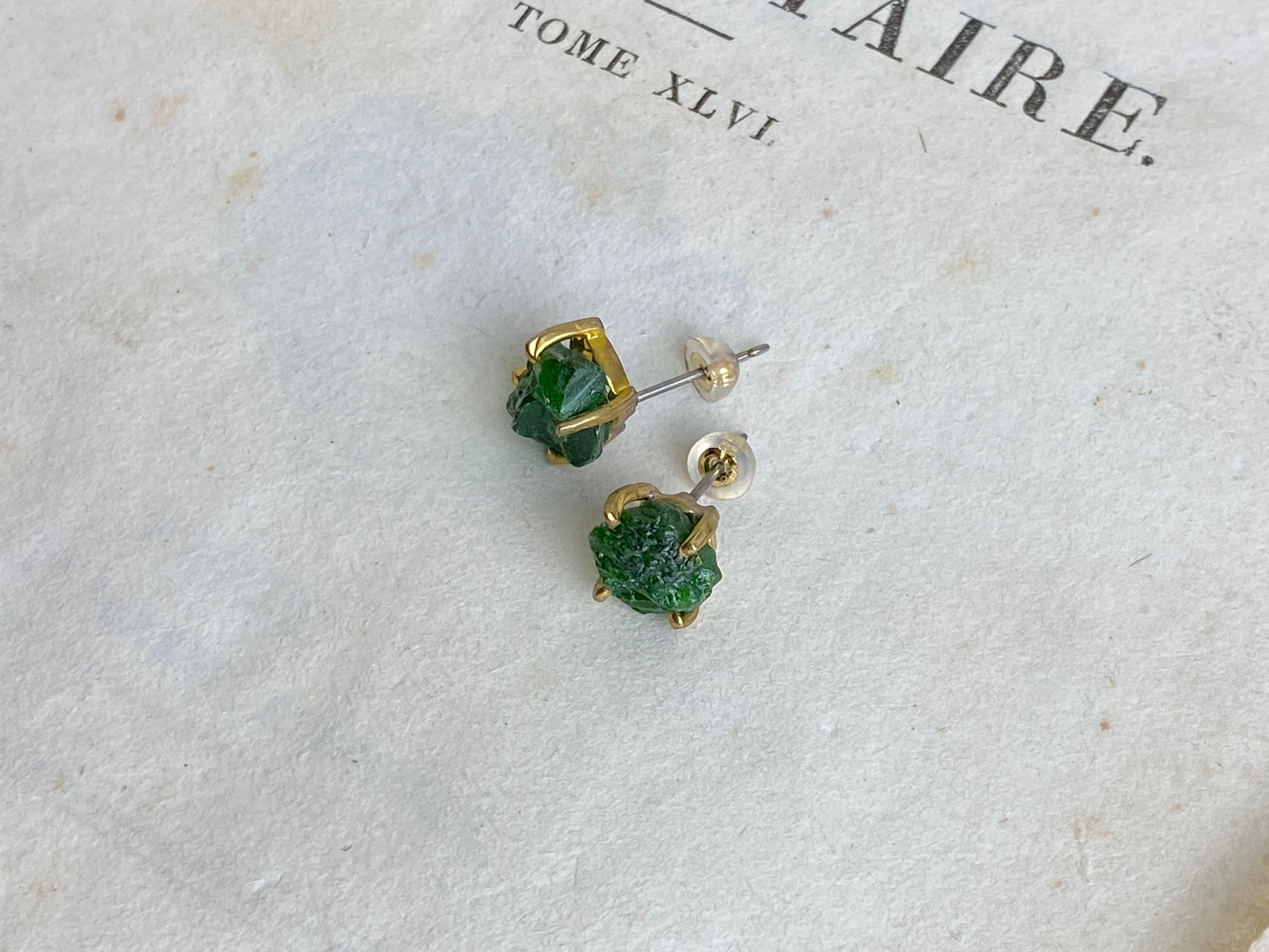 無骨なクロムダイオプサイトの原石を使用したピアス。